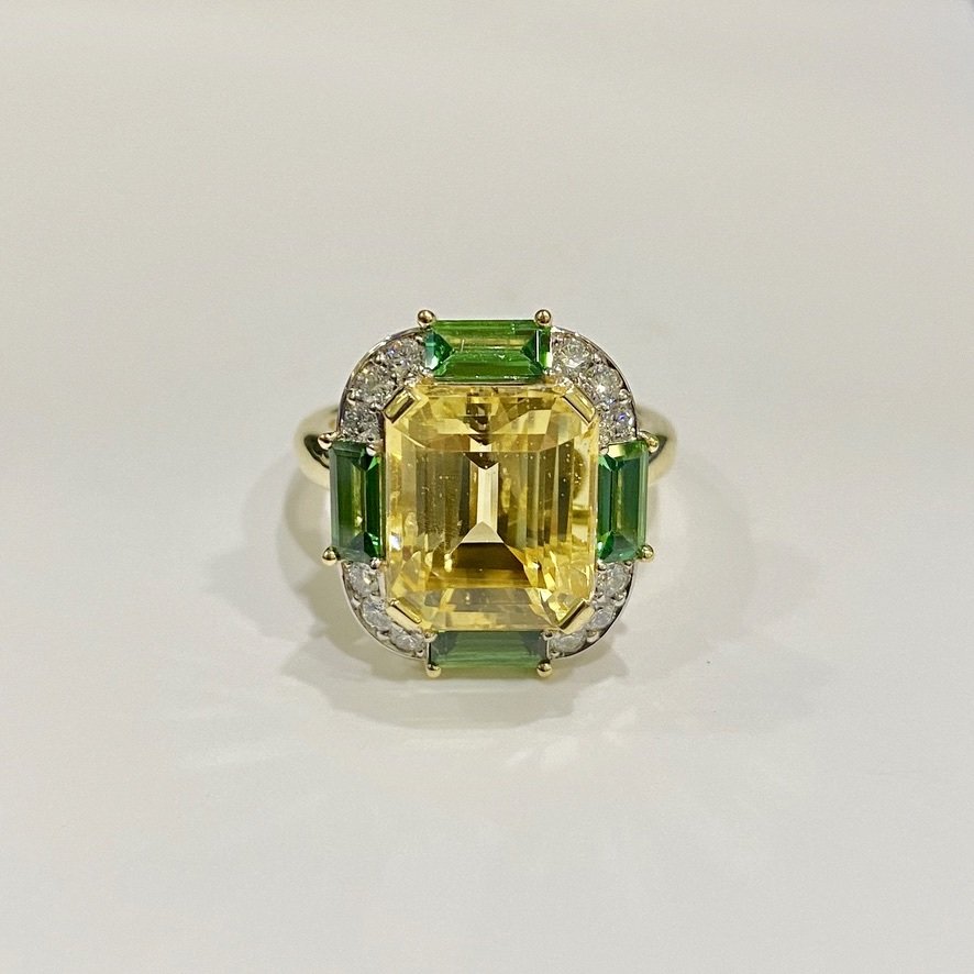 Example: Colombian emerald and natural white diamond ring in Platinum & 18K YG