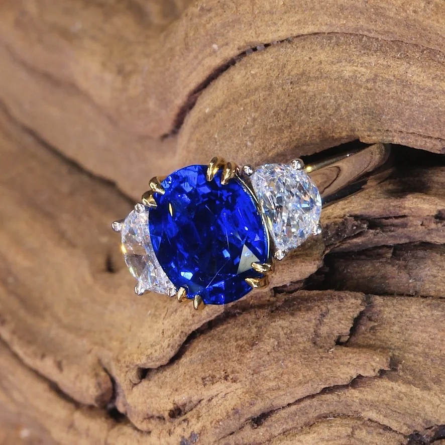 Custom 18K YG & Platinum 1.25ct diamond & unheated sapphire ring